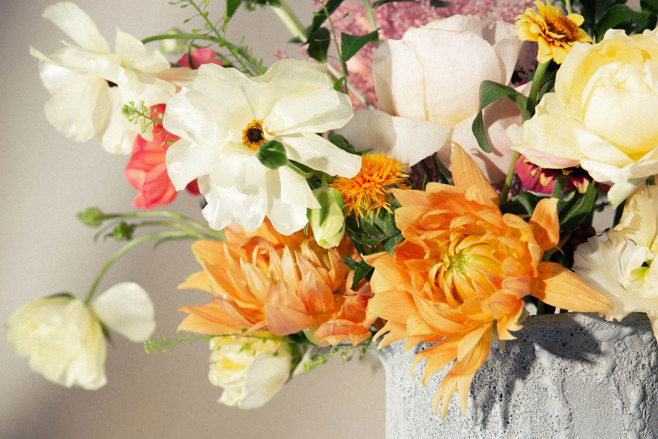 Upon receiving your bouquet, give the stems a fresh diagonal cut before placing in room temperature water - preferably with sharp, clean scissors. Make sure any leaves stay above the water line.